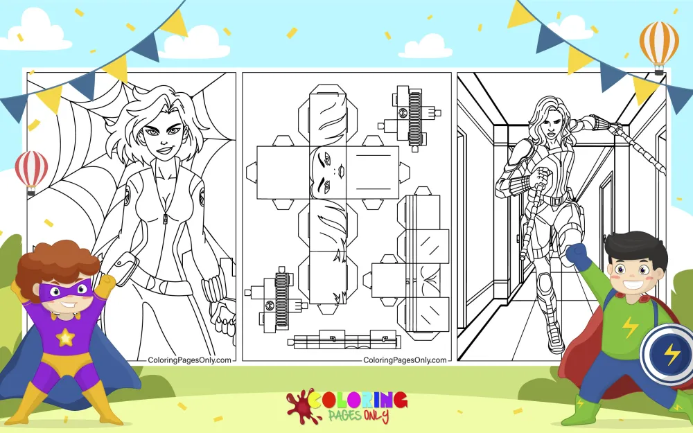 We have an extremely convenient Black Widow illustration paper toy model for you to implement this idea. First, you must print the coloring page on stiff paper.