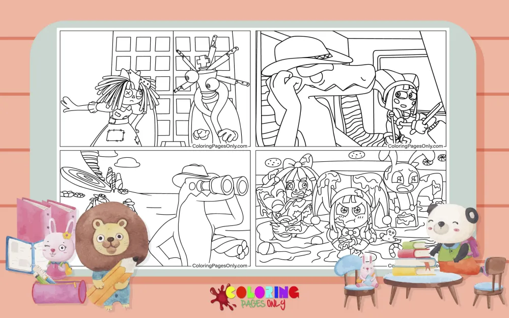 ‘Candy Carrier Chaos‘ is an episode of The Amazing Digital Circus, an online animated series, and this second episode has recently premiered. In this episode, the cast embarks on a quirky adventure in the Candy Canyon Kingdom. With unique characters, vivid colors, and lively music, these coloring pages promise to bring laughter and beautiful experiences to kids.