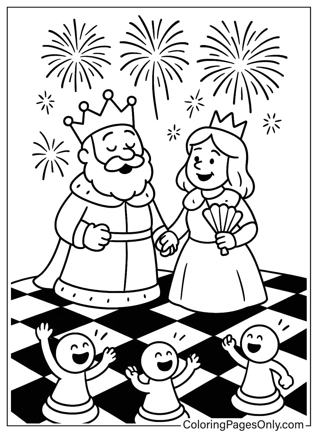 Kings and Queens watching fireworks, or the whole chess family celebrating with lanterns and confetti – perfect for holiday fun!