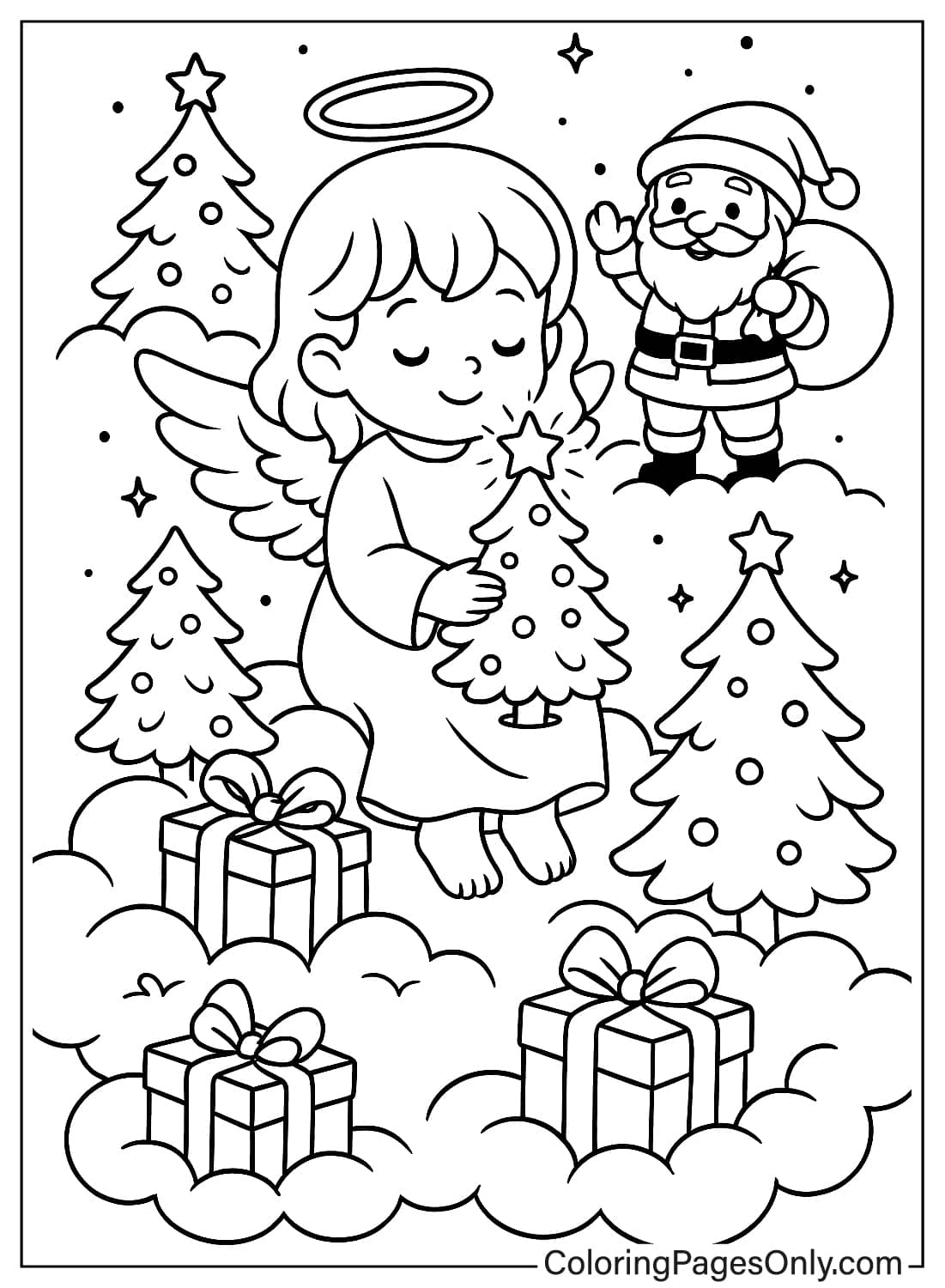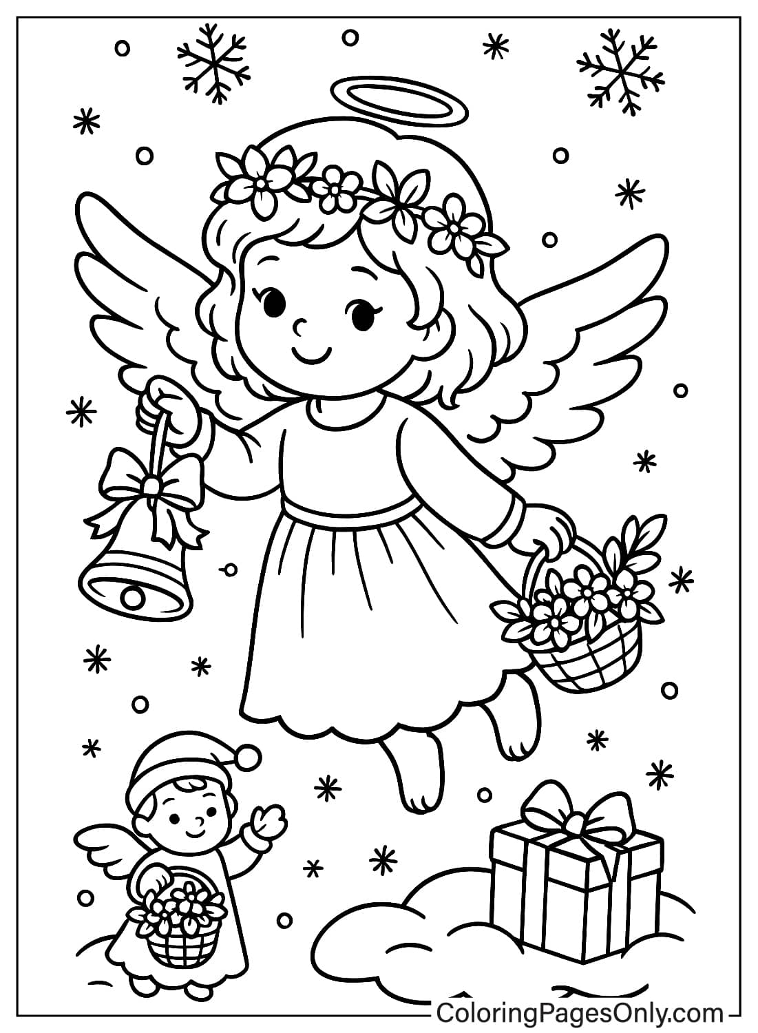 Christmas Angels Coloring Pages are black-and-white illustrations featuring angels in holiday themes-often shown floating, singing, praying, playing trumpets, or spreading Christmas joy. These pages symbolize peace, hope, and the beauty of the Christmas story.