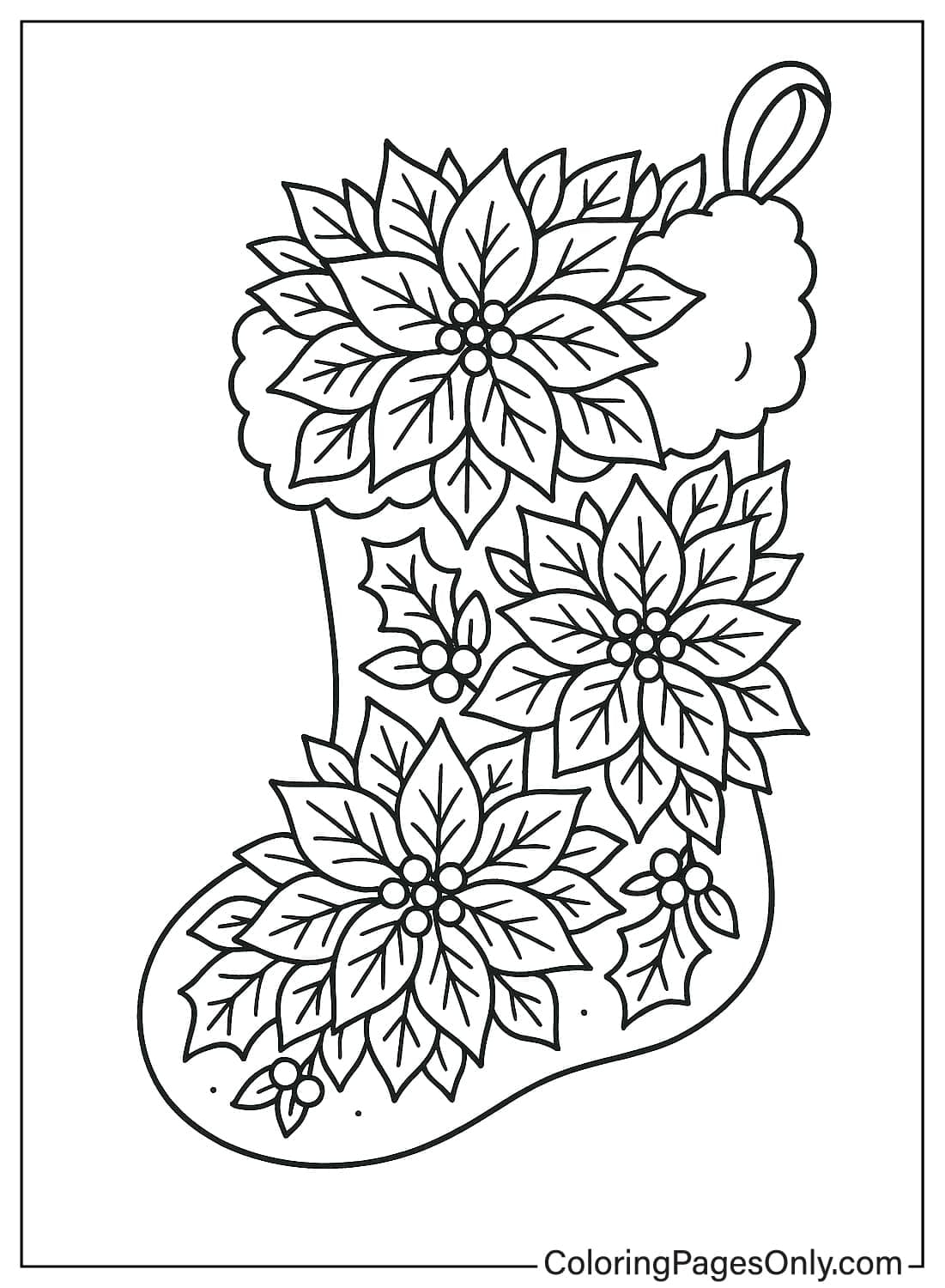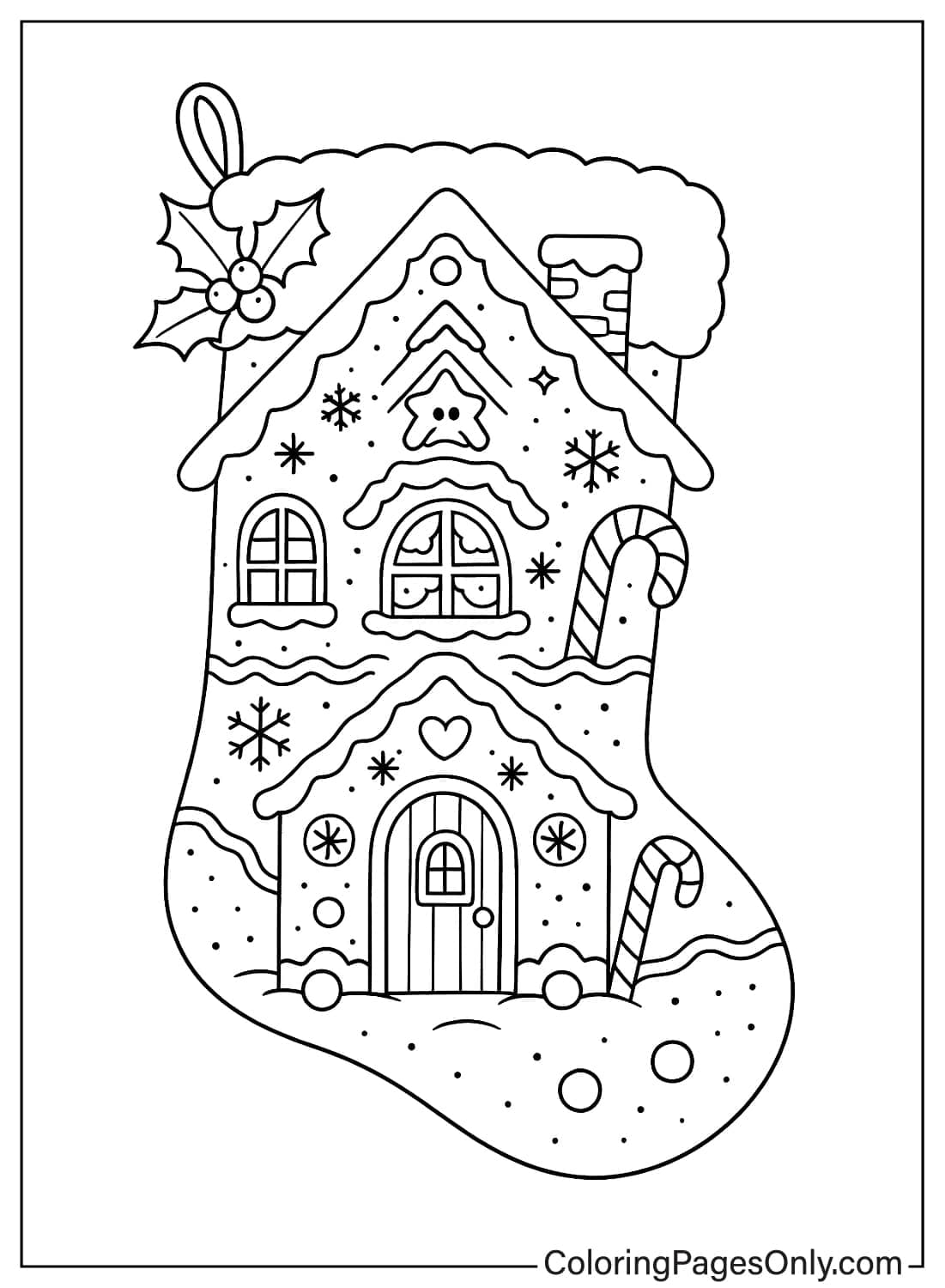 Christmas Stockings Coloring Pages feature black-and-white illustrations of holiday stockings, often decorated with classic Christmas elements such as holly leaves, snowflakes, candy canes, stars, gifts, ornaments, and festive patterns. Many designs also include fireplaces, mantels, Santa scenes, and Christmas morning themes.