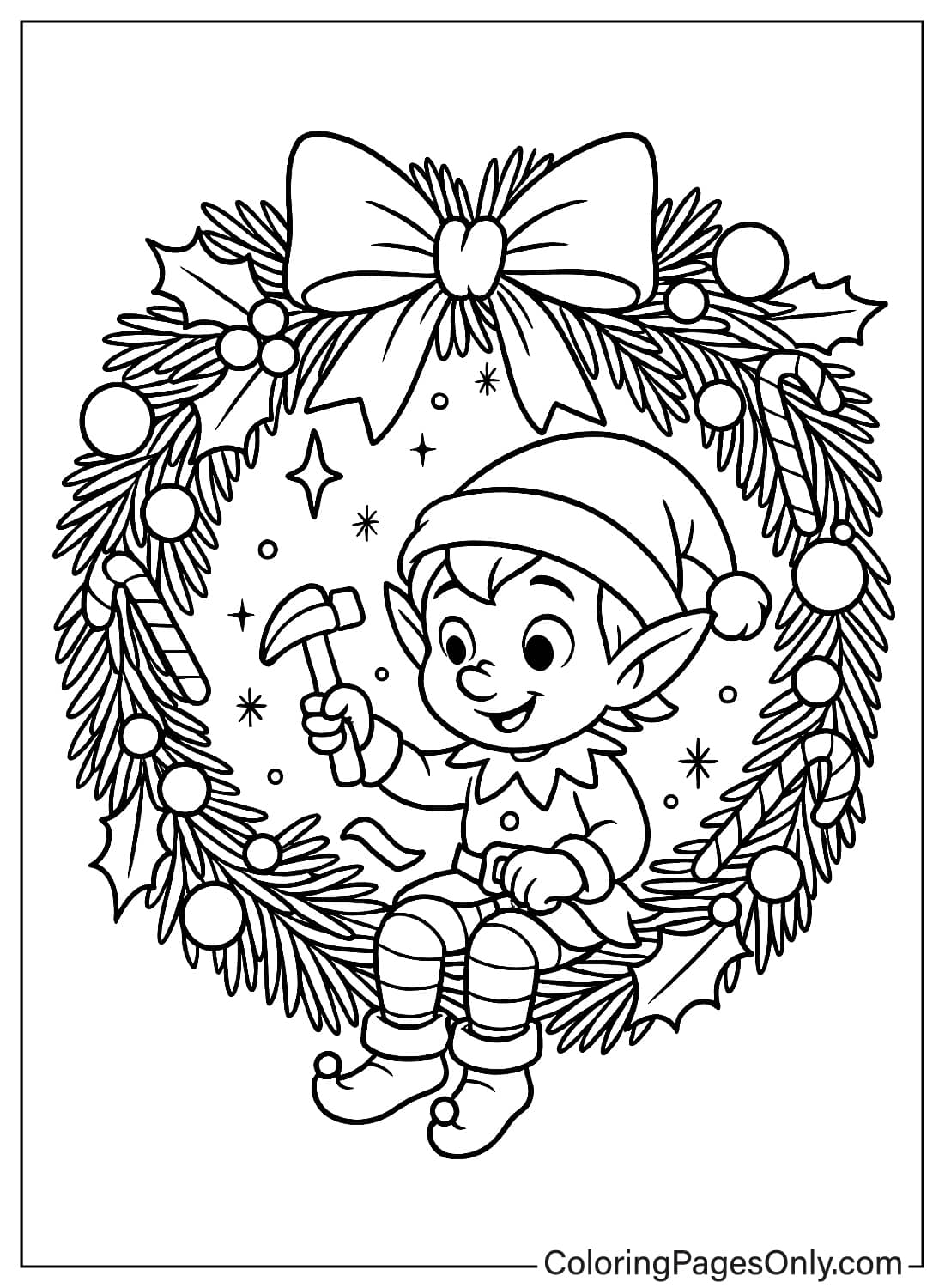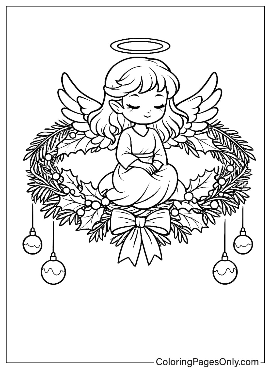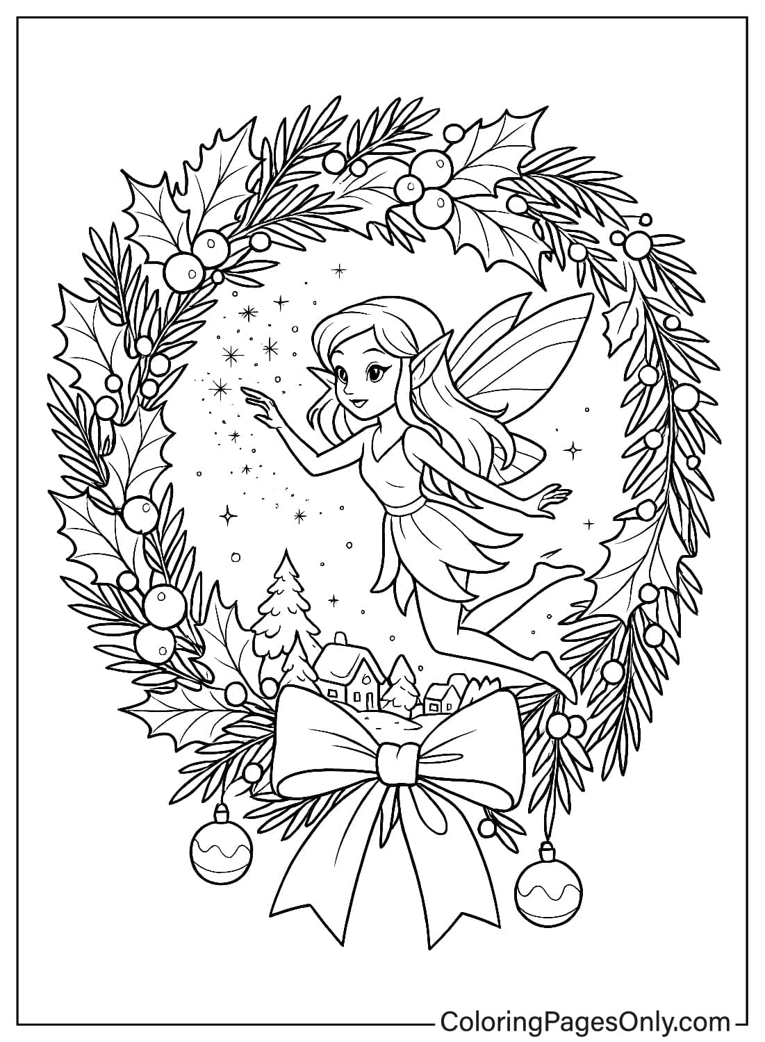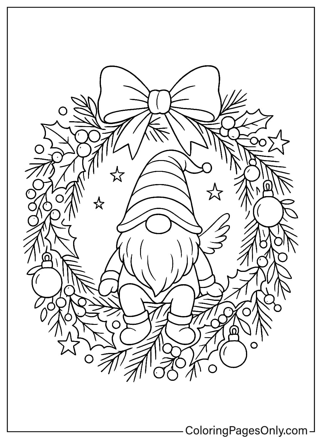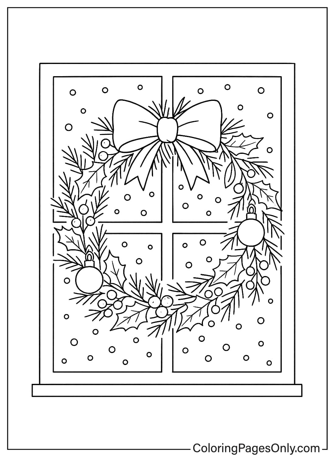 Christmas Wreath Coloring Pages are black-and-white illustrations featuring holiday wreaths decorated with classic Christmas elements such as holly leaves, berries, pine branches, bows, ornaments, bells, snowflakes, candy canes, poinsettias, and winter florals.