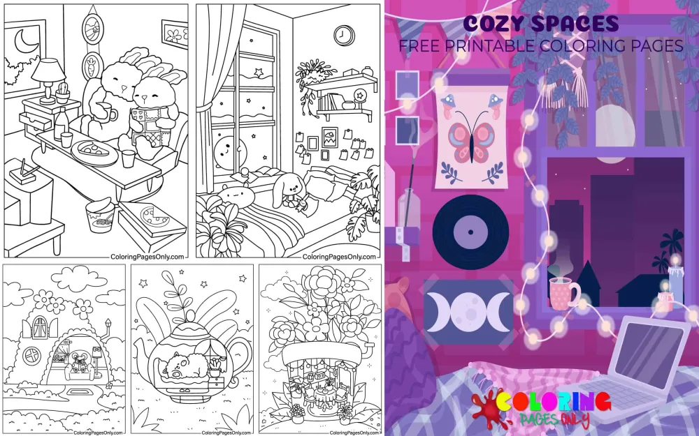 ✨ Ready to dive into a world of warmth and creativity? Download your free printable Cozy Spaces Coloring Pages today and start coloring your way to relaxation!