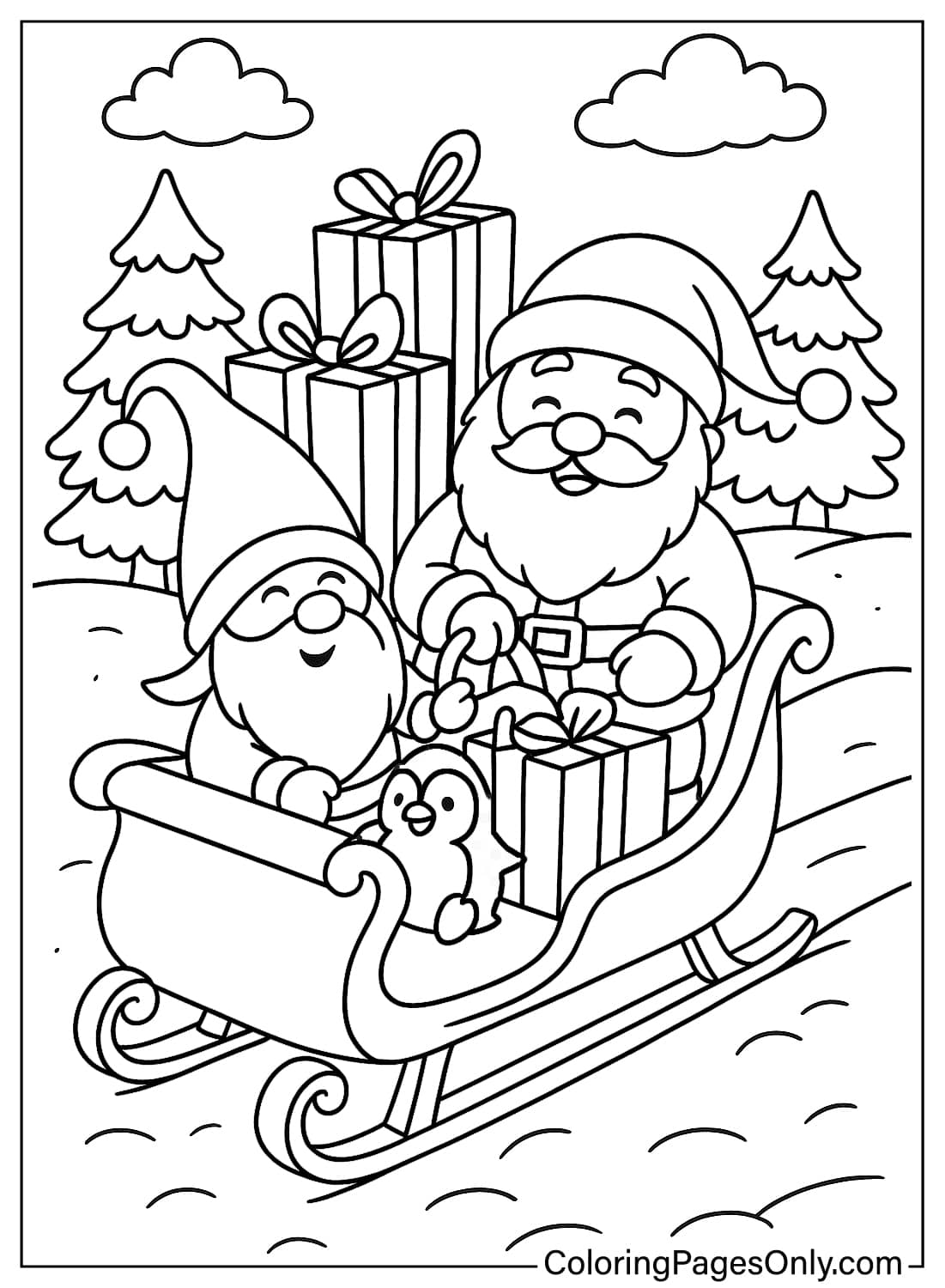 Santa Gnomes Coloring Pages