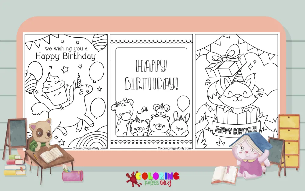 In this collection, some pages depict magical scenes with colorful balloons and funny animals at the party and the towering birthday cakes. Personalized messages are integrated into the design, adding a special touch to your well-wishes.