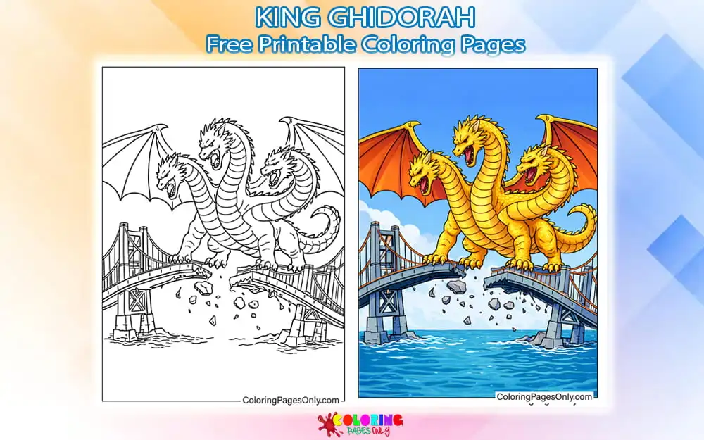 These King Ghidorah Coloring Pages are made for users who want monster-themed fun without extra steps. They can browse the gallery, choose a page, download it in the format they want, print it at home, or color it online right away.