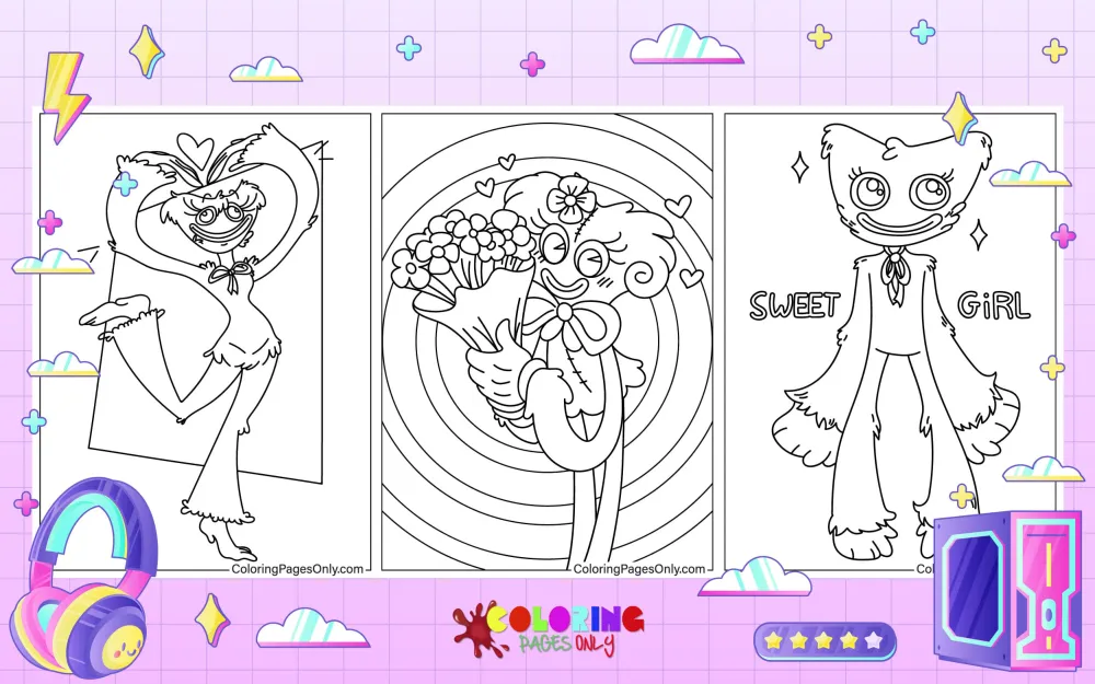 These pages aren’t just fun and help you delve deeper into the Poppy Playtime universe. You become part of the story when you bring Kissy Missy and the other characters to life with your own color palette. No matter your style, a perfect Kissy Missy coloring page is waiting to unleash your inner creativity.