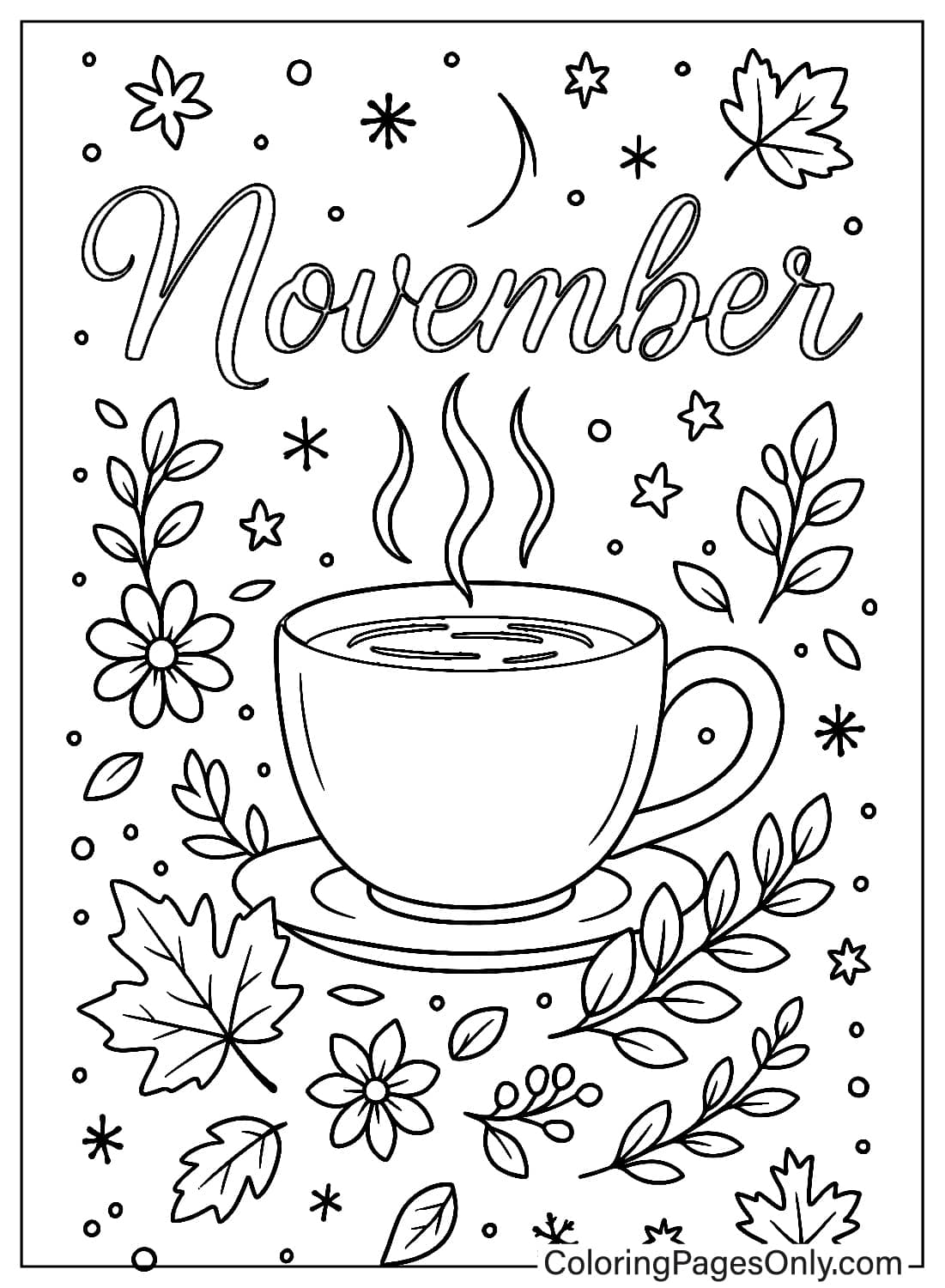 Transform simple and plain cups into unique pieces using Cute November Coloring Pages themes, such as images of yellow leaves, Thanksgiving motifs, or other autumn symbols. Color and cut the colored templates into pieces that fit the surface of the cup.