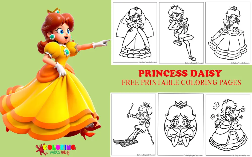 This collection features beautifully crafted illustrations. This collection celebrates Princess Daisy in all her glory — from royal portraits to fun racing scenes. And the best part? Every single page is free to download, printable, and available in PDF, PNG, and JPG formats, making it easier than ever to color anytime, anywhere.