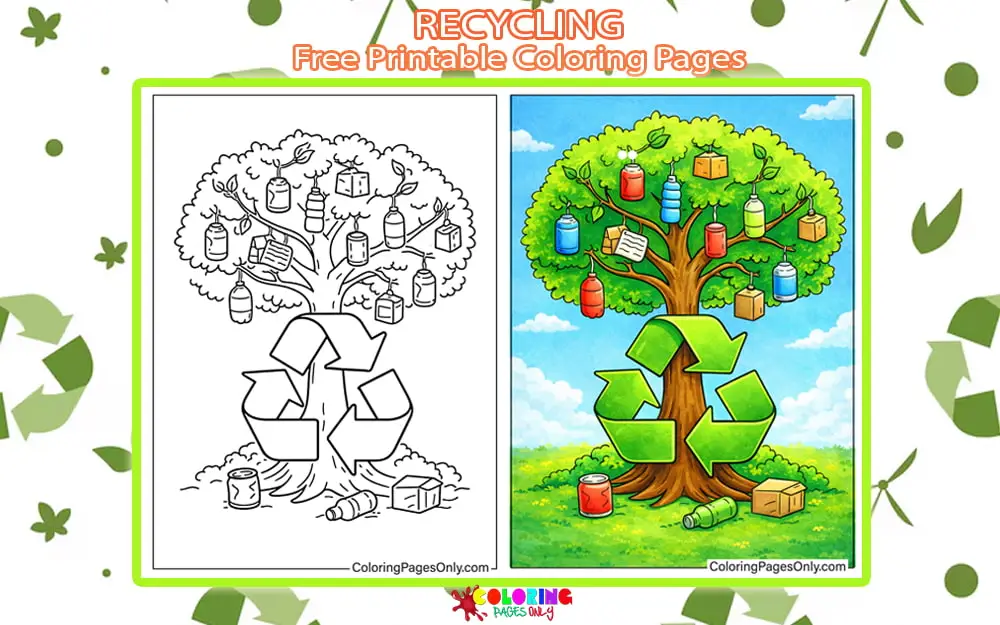 Recycling Coloring Pages help kids explore how to protect nature through fun printable scenes featuring recycling bins, symbols, & eco-friendly activities.