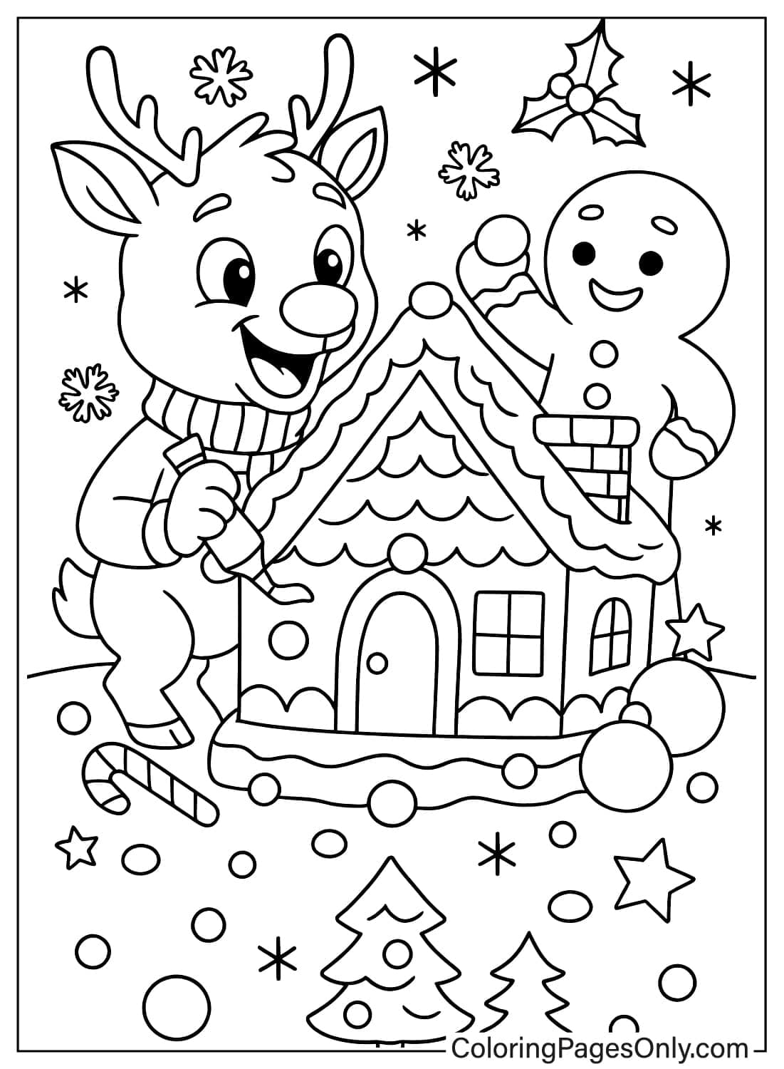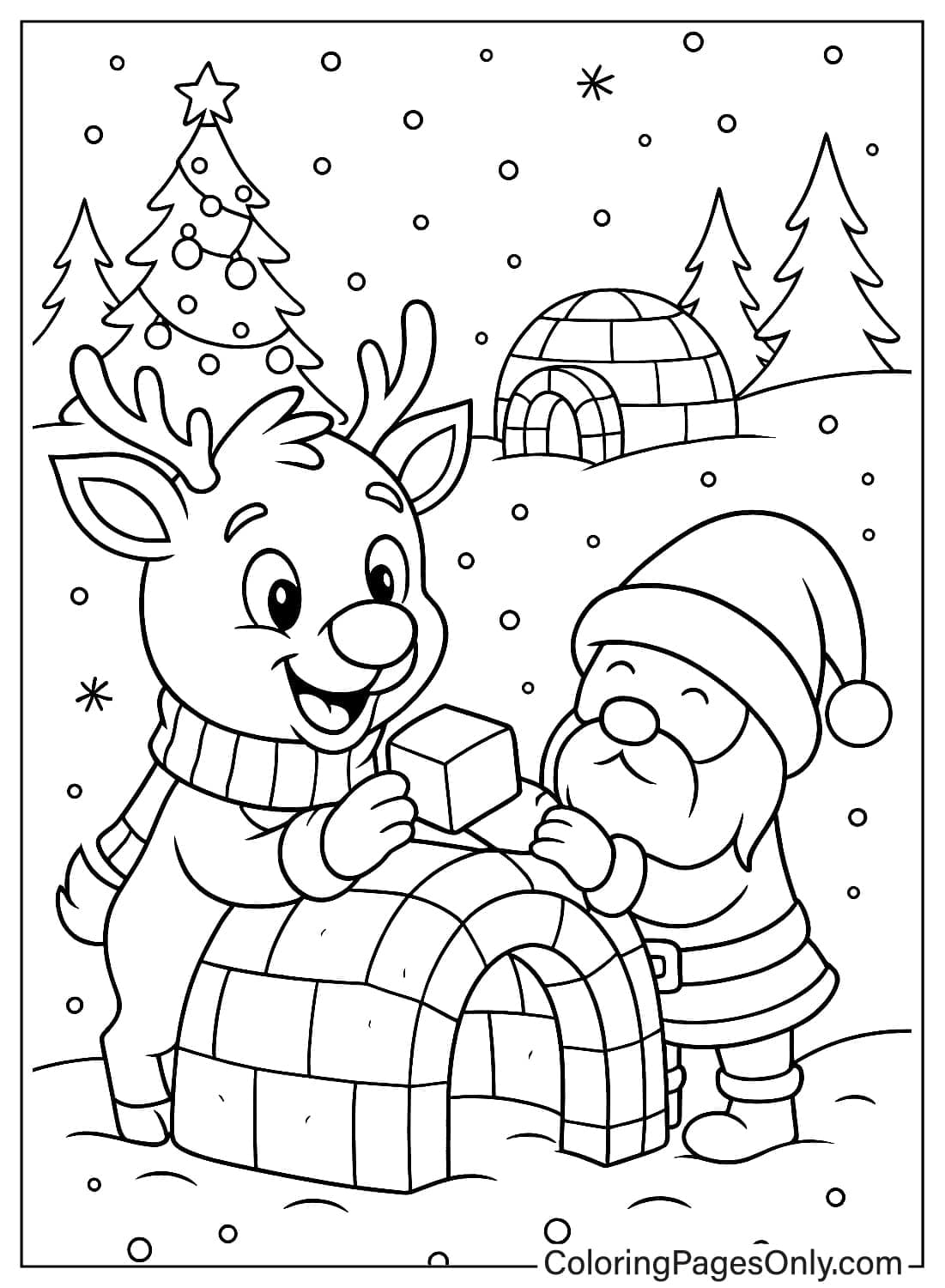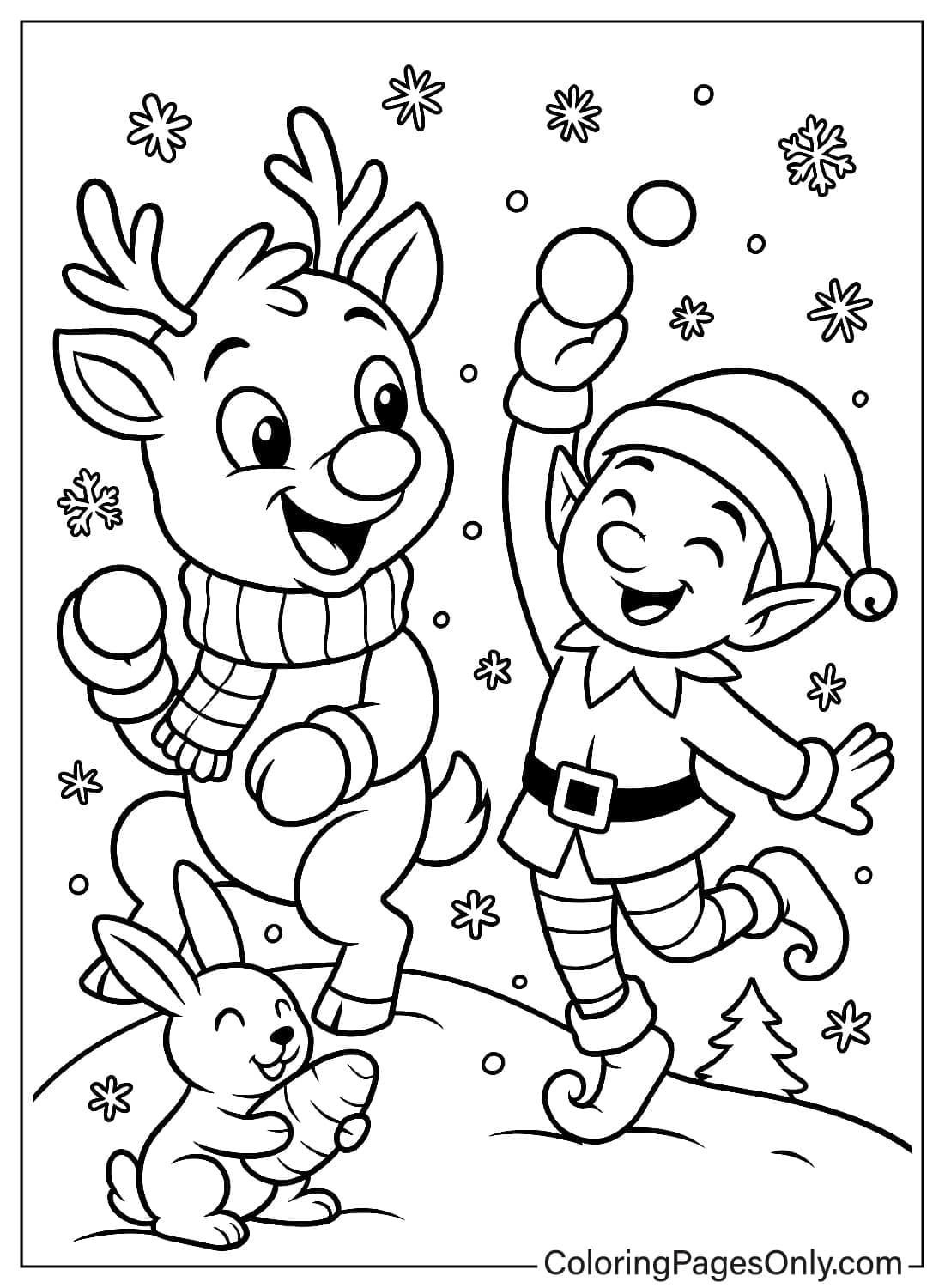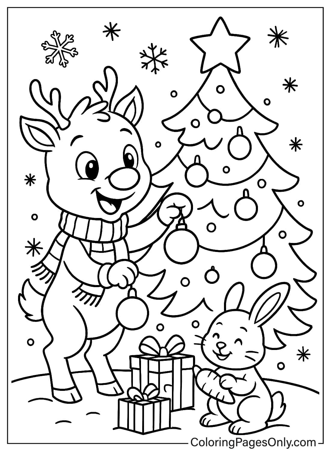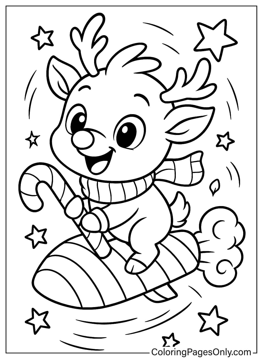 Rudolph Coloring Pages are black-and-white illustrations featuring the beloved red-nosed reindeer from holiday stories and Christmas traditions. These pages often include: