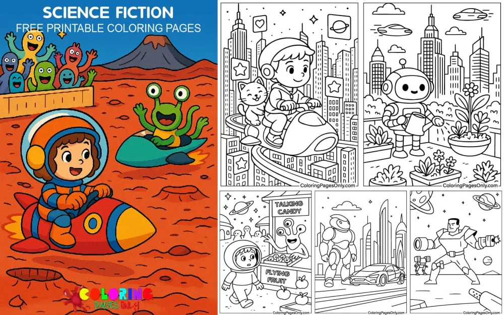 Science fiction isn’t just cool — it inspires young minds to think big, ask questions, and imagine endless possibilities. From flying cars to talking robots, the sci-fi genre is packed with wonder. Coloring these scenes helps children explore futuristic themes, develop storytelling skills, and fuel their creativity.