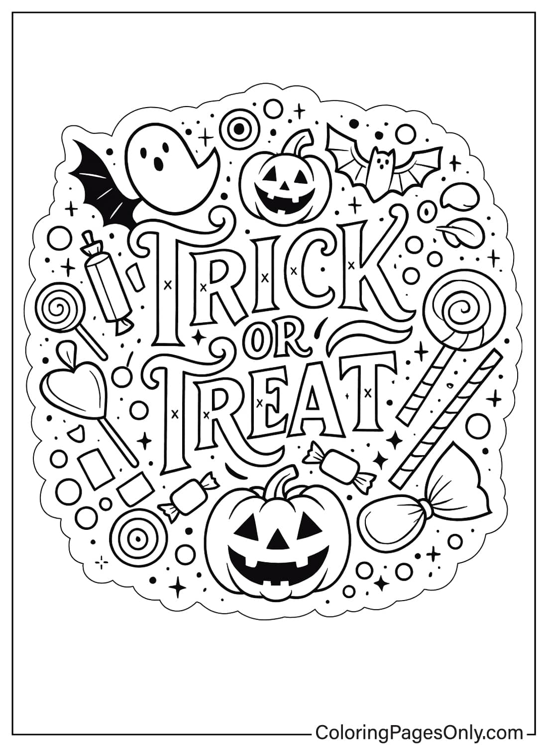 Get your candy bags ready! Our Trick or Treat Coloring Pages at Coloringpagesonly.com are here to bring the sweetest part of Halloween right to your art table. This fun-filled collection captures everything we love about October 31- costumes, candies, pumpkins, and laughter echoing through the night.