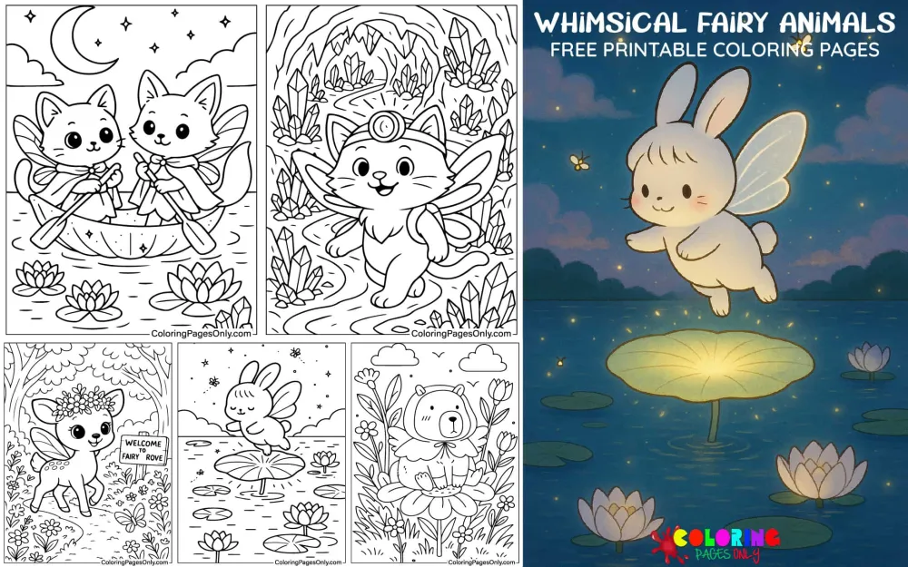 Get ready to enter a world of enchantment, sparkling wings, and adorable animal friends! Our Whimsical Fairy Animals Coloring Pages at Coloringpagesonly.com are the perfect invitation to dream big, color freely, and let imagination soar.
