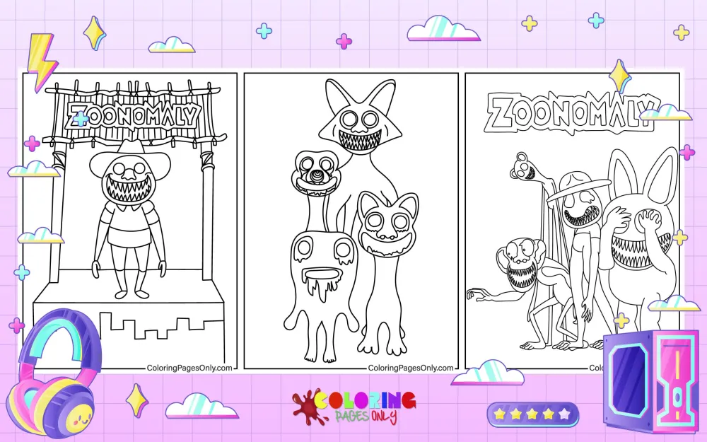 This collection of 18 Zoonomaly coloring pages is based on the new horror video game. Our creative team has compiled and designed unique illustrations for fans of all ages who love to color.